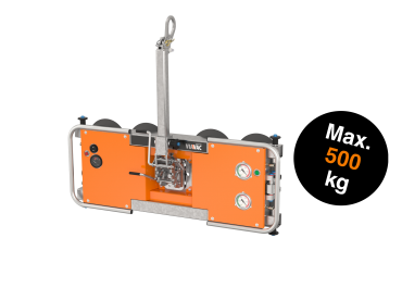 The VIAVAC GBL is designed to easily install a variety of flat glass. Due to its compactness, this glass lifter can be widely used for large glass facade elements, windows between facades and scaffolding, or long glass panels for conservatories. The innovative, short lifting lug also makes lifting in small spaces possible. A lifting or mini-crane can be used to place flat glass under an overhang. The VIAVAC GBL is suitable for installing glass panels of up to 250 kg. The lifting capacity can be expanded to 500 kg by adding extensions.