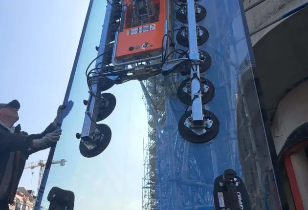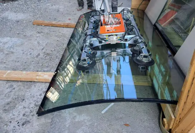 The use of curved glass is very popular in the construction industry. Curved glass offers the opportunity to create unique and aesthetically pleasing buildings with a modern look. In addition, curved glass panels are becoming larger and heavier, which requires a solution to safely install the glass and relieve the installation team. The best method for this is to use a glass lifter. VIAVAC has developed a glass lifter that provides both. The VIAVAC GBXL Curved places curved glass up to a weight of up to 700 kilograms.