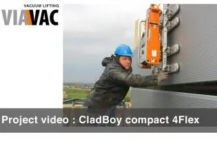 When more lifting capacity is required, the CladBoy compact 4Flex with a single-circuit safety system can be used. This has a lifting capacity of up to 400 kg. When wall or roof panels become even heavier and longer, it is advisable to switch to the CladBoy.