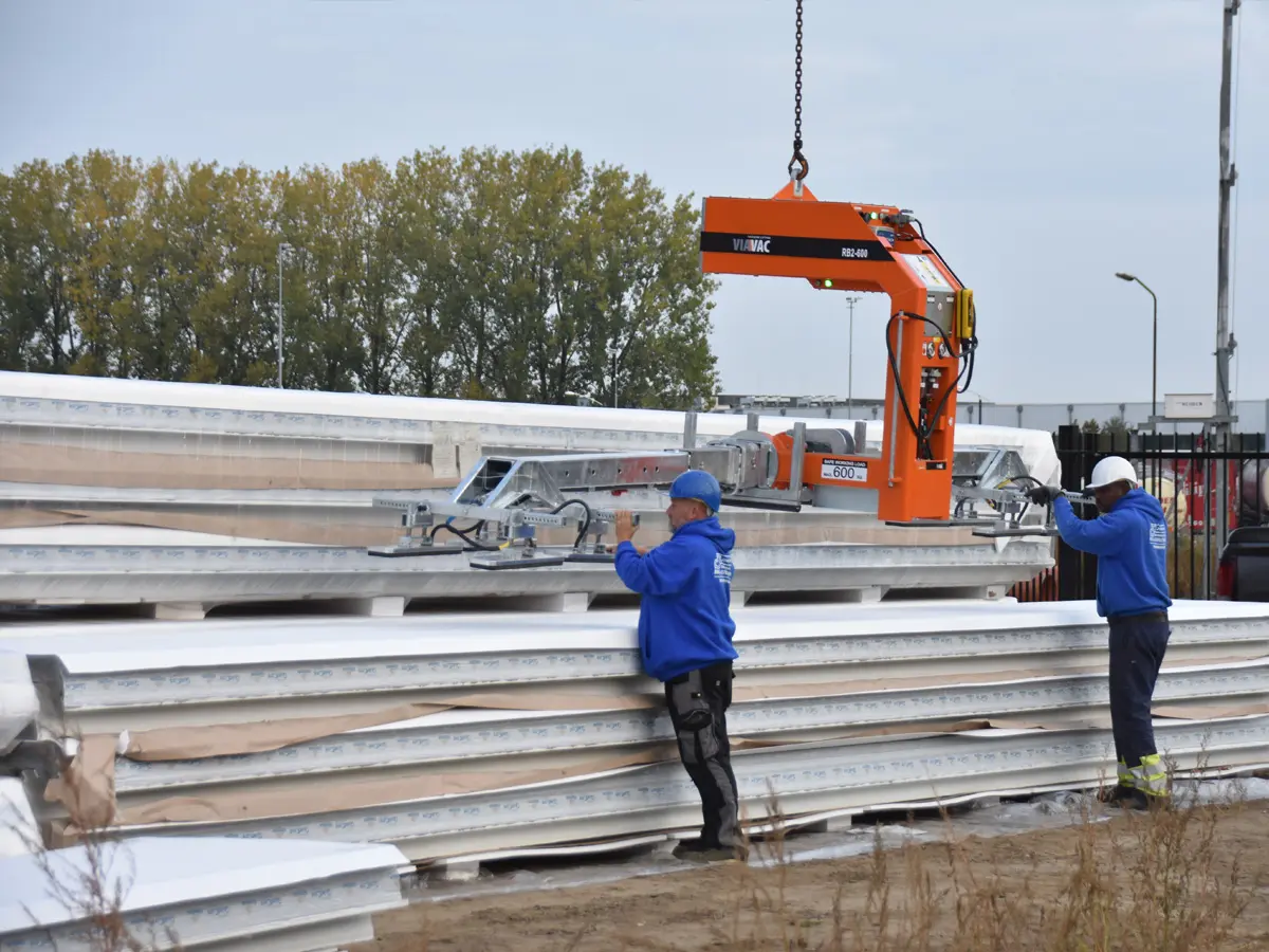 Often, certain types of panels are stacked offset when delivered to the construction site (AB-stacking). This is to deliver straight quality, but stability and an optimal load factor during transport also play a role. Before the installation process can start at the construction site, these stacked panels must first be rotated. This manual work is strenuous and not healthy, especially when working with long panels. VIAVAC has developed the RotaBoy, which offers a solution. This powerhouse has been used successfully for many years and avoids placing physical stress on employees