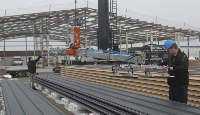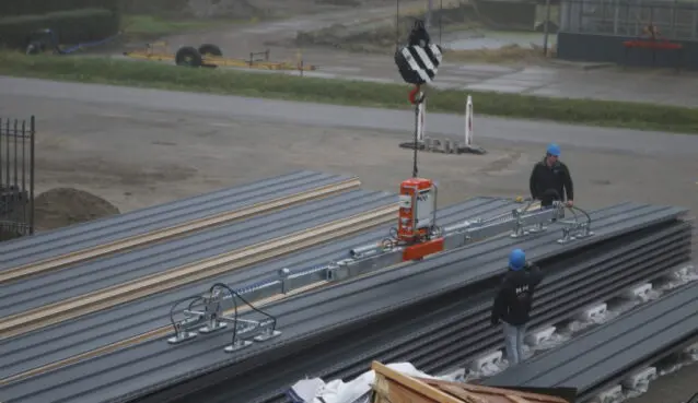 Middendorp Montage has used the vacuum lifter for the extension of a company hall in Breezand. They have used 21 metres long panels with a thickness of 100 mm for the realisation.