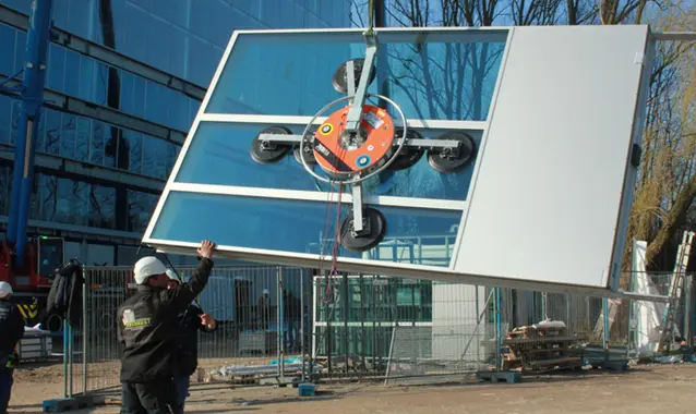 For this project, very strict requirements were set concerning safety on the construction site and the working conditions for the employees. The use of VIAVAC vacuum lifters, among other things, made it possible to install the very long and heavy sandwich panels in a safe and efficient way.